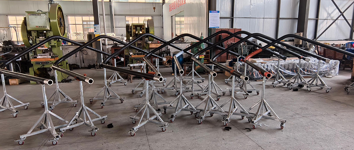 一、 導(dǎo)體精加工1、 材料選用:從倉(cāng)庫(kù)領(lǐng)出經(jīng)入廠檢驗(yàn)合格的銅管,并核驗(yàn)外徑、壁厚尺寸無(wú)誤。2、 導(dǎo)體鋸切:對(duì)照?qǐng)D紙編號(hào)選擇裁切方案,充分利用庫(kù)存規(guī)格,避免浪費(fèi)。鋸切完成的,在表面寫(xiě)上相應(yīng)的編號(hào),用毛刷掏干凈銅管內(nèi)的銅屑。3、 終端頭焊接:焊接前將銅管端頭用坡口機(jī)坡口(45°),用酒精清潔端部,將由本公司車(chē)削加工中心預(yù)制的終端頭內(nèi)襯部分插入銅管端部,采用熱熔焊接方式將終端頭與銅管完整焊接,焊接完成打磨拋光焊接點(diǎn)后進(jìn)行X光探傷檢測(cè)。4、 粘接法蘭:按照不同規(guī)格銅管的要求在適當(dāng)?shù)奈恢谜辰臃ㄌm,在粘接部位銅管表面打磨出50mm寬的毛糙面,并用無(wú)水酒精擦拭干凈毛糙面的灰層和毛屑后涂敷粘接AB膠,法蘭膠固化后將多余的膠打磨掉,以不影響緊固澆注嘴為準(zhǔn)。5、 導(dǎo)體煨彎:對(duì)照?qǐng)D紙,在數(shù)控彎管機(jī)上對(duì)導(dǎo)體進(jìn)行煨彎,彎管后復(fù)核彎管尺寸,長(zhǎng)度誤差≤2mm,角度誤差≤0.5°,煨彎完成后,對(duì)導(dǎo)體表面進(jìn)行去毛刺和氧化層的打磨處理,用無(wú)水酒精擦除表面毛屑后進(jìn)入凈化車(chē)間進(jìn)行下道工序。二、 浸漬紙繞包1、 絕緣皺紋紙和半導(dǎo)體皺紋紙分開(kāi)放在不同的潔凈容器內(nèi),防止混裝造成絕緣紙被半導(dǎo)紙污染(導(dǎo)電顆粒摩擦掉落至絕緣皺紋紙內(nèi))。2、 將導(dǎo)體在工裝支架上懸空支撐,繞包前再次清潔導(dǎo)體表面。3、 由經(jīng)過(guò)崗前培訓(xùn)的操作人員進(jìn)行繞包作業(yè),按照相應(yīng)項(xiàng)目的繞包工藝單列明的屏位尺寸、繞包厚度進(jìn)行繞包(直線和單水平彎母線采用機(jī)械繞包,立體彎母線采用人工繞包),由專(zhuān)職生產(chǎn)過(guò)程檢驗(yàn)質(zhì)檢員檢查屏位是否準(zhǔn)確、檢查繞包松緊度和表面平整度。三、 外護(hù)套熱縮及布帶纏繞1、 根據(jù)電壓等級(jí)、電流大小、母線編號(hào)選擇正確的熱縮套管。2、 根據(jù)母線形狀制定熱縮管裁剪余量,一根母線必須采用整段連續(xù)長(zhǎng)的熱縮套管。3、 套好熱縮管后進(jìn)行熱縮,留下距離法蘭500mm左右的距離暫不熱縮,趁熱纏繞熱縮布袋,熱縮布帶按照2/3搭接,檢查是否有漏纏。待微涼后碼回未經(jīng)熱縮的套管,露出法蘭在法蘭上安裝注膠嘴后補(bǔ)打法蘭膠(138/998膠組)。在法蘭膠未固化前把熱縮管抻出來(lái)進(jìn)行熱縮,纏繞布帶,上喉箍,連接三通。在布帶表面標(biāo)注母線編號(hào)。四、 真空澆注1、 一批次母線外護(hù)套熱縮并布帶纏繞完成后,放入熱風(fēng)循環(huán)固化烘箱進(jìn)行抽真空及注澆注料管線連接,進(jìn)出料管線需與母線編號(hào)一致,進(jìn)料端管線需在爐內(nèi)卡死,防止水分蒸發(fā)到爐外。2、 常溫至105℃升溫,固膠,干燥水分,此過(guò)程設(shè)定為240分鐘(4小時(shí))。3、 保持105℃,并對(duì)母線皺紋紙層間進(jìn)行干燥、抽真空,持續(xù)1800分鐘(30小時(shí))。該過(guò)程先啟動(dòng)冷水機(jī),然后啟動(dòng)旋片泵,觀察真空度,60分鐘內(nèi)真空度達(dá)不到2000Pa以?xún)?nèi),則需檢查漏點(diǎn),排除故障。300分鐘內(nèi)真空度將達(dá)到1000Pa以?xún)?nèi),則基本排除漏點(diǎn)存在的可能。從升溫開(kāi)始1200分鐘后,真空度應(yīng)達(dá)到300Pa以?xún)?nèi),此時(shí)需緊固一次母線的法蘭抱箍,同時(shí)可以對(duì)母線進(jìn)料端進(jìn)行抽真空,當(dāng)母線真空度維持在100-300Pa之間時(shí),無(wú)需啟動(dòng)羅茨泵,在第二個(gè)工作日下班前對(duì)環(huán)氧樹(shù)脂進(jìn)行預(yù)熱,為第二天拌料做準(zhǔn)備,注意觀察預(yù)混缶內(nèi)料的數(shù)量,保證滿(mǎn)足相應(yīng)母線的澆注用量。4、 爐溫從105℃降至65℃,在65℃時(shí)進(jìn)行恒溫澆注操作,澆注的時(shí)間段時(shí)長(zhǎng)不固定,以全部產(chǎn)品完全浸漬飽和為目標(biāo),一般時(shí)長(zhǎng)不超過(guò)600分鐘(10小時(shí)),否則進(jìn)料端環(huán)氧樹(shù)脂由于長(zhǎng)時(shí)間處于室溫狀態(tài),粘稠度變大,浸漬過(guò)程將變得非常緩慢。5、 澆注好的母線靜置大約40分鐘左右,以利于皺紋紙完全吸收,然后進(jìn)行二次給料,先開(kāi)進(jìn)料閥,后松出料端卡箍,待出料端樹(shù)脂料進(jìn)入料杯50mm以上高度時(shí),用卡箍卡死出料管,然后關(guān)閉所對(duì)應(yīng)的進(jìn)料閥門(mén)。待一爐內(nèi)所有的母線都澆注完成后,,關(guān)閉出料閥,并注意檢查每個(gè)出料閥都處于完全閉合狀態(tài),防止排放壓力容器中的樹(shù)脂料時(shí)空氣進(jìn)入母線內(nèi)部,造成產(chǎn)品損壞。6、 以上工作完成后,關(guān)閉預(yù)混料缶的加熱,再關(guān)掉真空機(jī)組以及冷水機(jī),打開(kāi)本烘箱管道上所有沒(méi)有接產(chǎn)品的閥門(mén),排凈管道和料杯內(nèi)的負(fù)壓,然后關(guān)掉有料料杯的閥門(mén),取下所有出料管上的卡箍,母線澆注完成。7、 排出進(jìn)料端管路中環(huán)氧樹(shù)脂和固化劑混合后的余料,利用負(fù)壓吸入清洗液對(duì)管路進(jìn)行清洗,清洗至管路中無(wú)混合好的樹(shù)脂料殘留。8、 啟動(dòng)烘箱的風(fēng)機(jī)和加熱按鈕,注意先后順序并確認(rèn)此時(shí)段